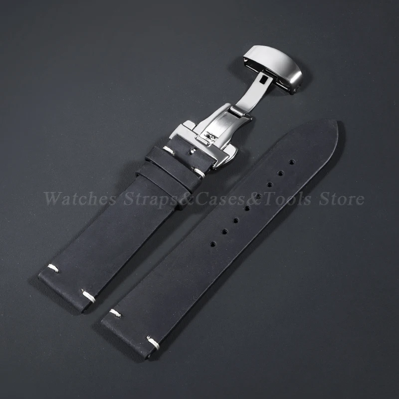 Stitching Cowhide Strap for Omega for Seiko 18/19/20/21/22/24mm Wrist Bracelet Vintage Brown Leather Watch Band Butterfly Buckle
